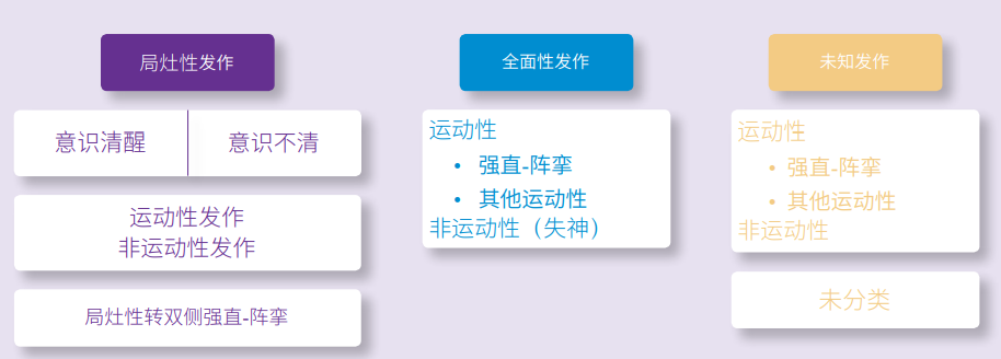 癲癇發(fā)作種類復(fù)雜多樣,2017年ILAE(國際抗癲癇聯(lián)盟)提出的新的分類標(biāo)準(zhǔn)如下圖。