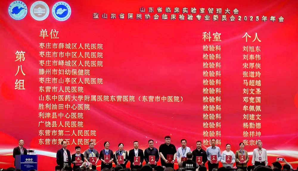 2025年4月27日山東省質(zhì)量管理大會上,薛城區(qū)人民醫(yī)院檢驗科憑借過硬實力脫穎而出,斬獲“山東省質(zhì)量管理先進集體”榮譽稱號!同時,劉旭東同志被授予“山東省質(zhì)量管理先進個人”殊榮!
